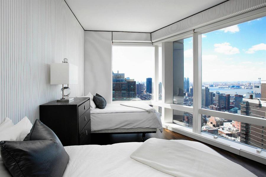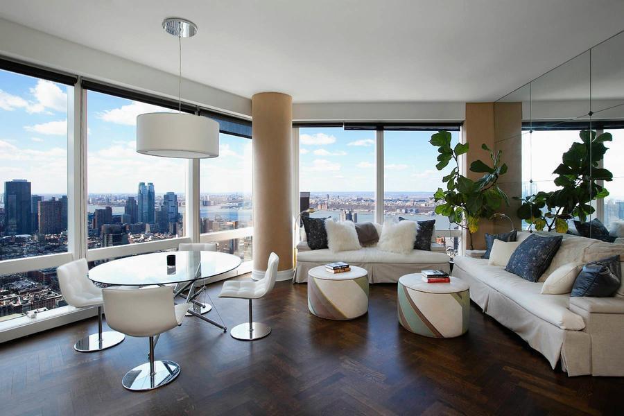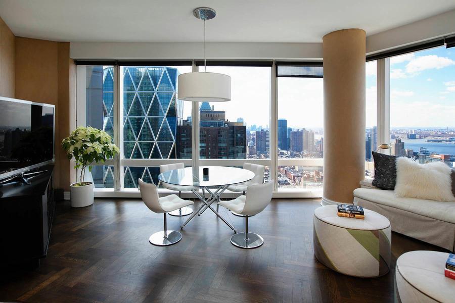 這套擁有2臥2.5衛的公寓坐落於曼哈頓最炙手可熱的大樓之一。一走進公寓,您就能感受到從落地窗外傾瀉而來的和煦陽光。屋內配置了10英尺高的天花板,以及定制的百葉窗,在這裡,每天一早起來就能欣賞到令人神往的城市美景。您能從每個房間看到自由女神像,以及漂亮的哈德遜河(Hudson River)。這套公寓配置了最好的材料。所有的牆壁都裝飾有定制的織物,使得每間房間都是那麼的獨一無二。卡雷拉(Carrera)大理石浴室中裝有浴缸,雙水槽,玻璃淋浴房,以及洗衣機/烘干機。廚房中配有最好的家電,那裡有足夠的空間放置您的所有烹飪工具,並裝有頂級的不鏽鋼美諾和零下(Miele& Sub Zero)家電,以及良好的通風設備。如果您想外出用餐,可以從3樓的私人通道直接通往時代華納中心商場(Time Warner Center Mall),那裡有曼哈頓最好的5星級飯店和購物場所。